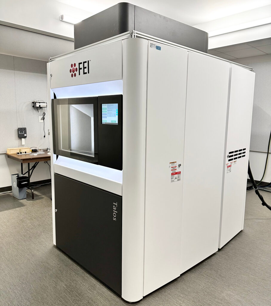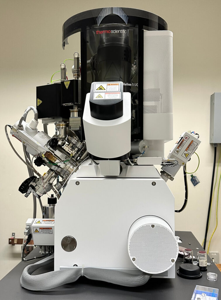 The Helios 5 is a modern workhorse FIB that CCEM has targeted to be used by both CCEM staff and users for efficiently performing typical FIB tasks such as cross-section analysis and sample preparation for TEM and atom probe tomography (APT). It is equipped with an assortment of detectors; Everhart– Thornley detector (ETD), through-the-lens detector (TLD), ion conversion and electron (ICE) detector, mirror detector (MD), and in-colunm detector (ICD); many with backscattered electron modes.